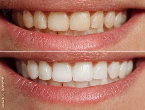 Stained teeth from coffee before vs white teeth after whitening