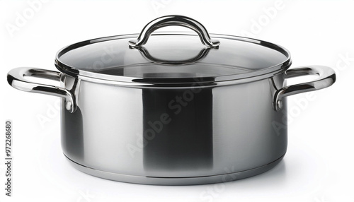 Stainless steel cooking pot, isolated on white background
