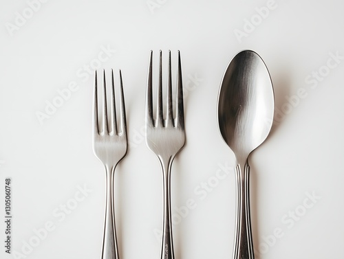 Stainless Steel Cutlery Set on White Background