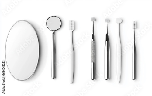 Stainless steel dental instruments including probe mirror and scaling tool isolated on white background PNG