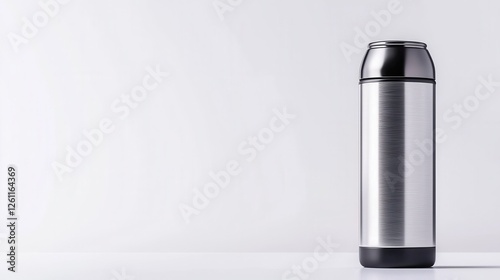 Stainless Steel Insulated Thermos for Beverages on White Background with Minimalistic Design