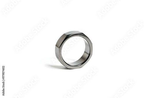 stainless steel ring isolated on a bright white background with a modern geometric pattern create with ai