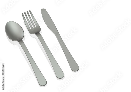 Stainless Steel spoon,knife and fork on white background