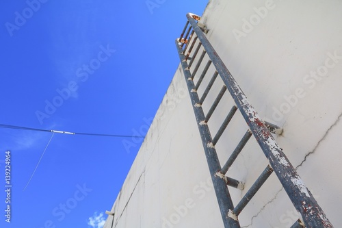 Staircase old vertical industrial metal rusted. to Water tank no safety rails
