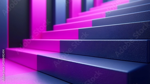 Staircase steps in magenta and blue with columns, perspective view for a geometric background