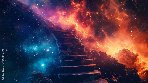 Stairway to a cosmic galaxy in space. Ecliptic Light. Illustration