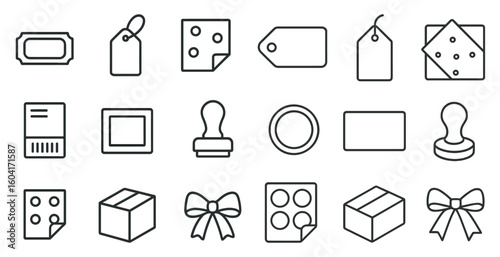 Stamp and tag outline icons set – silhouette, label, emblem design elements