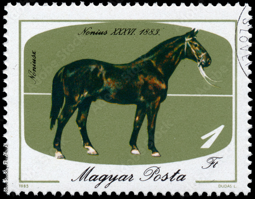 Stamp printed in Hungary shows Horse