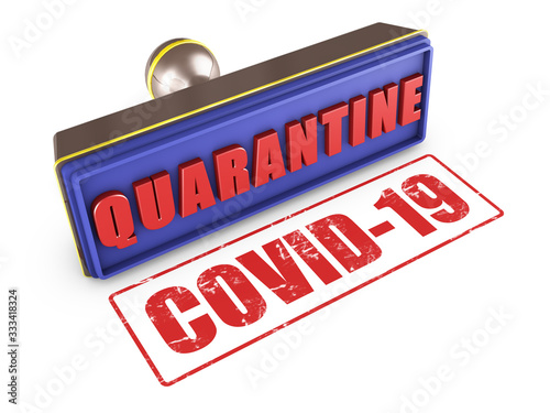 Stamp with the inscription Quarantine and the imprint of Covid-19. 3d render.