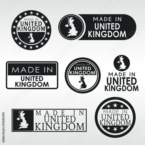 Stamps of Made in United Kingdom Set. Product Emblem Design. Export Vector Map.