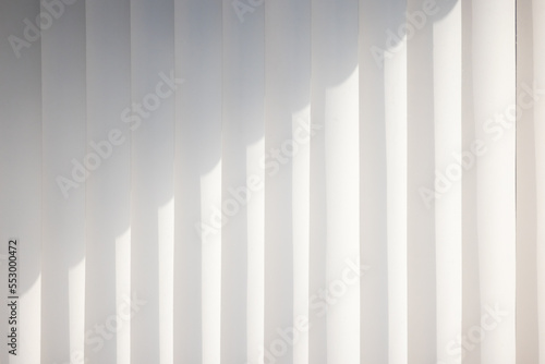 Standard vertical white blinds on the wall with shadow pattern