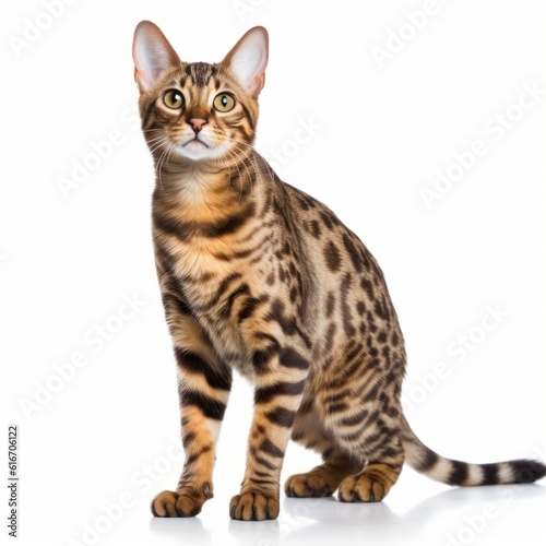 Standing Bengal Cat. Isolated on Caucasian, White Background. Generative AI.