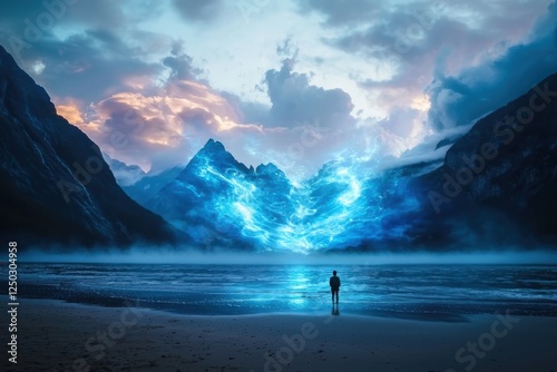 Standing on a cliff ocean at night photograph tranquil environment full moon reflection evoking peace
