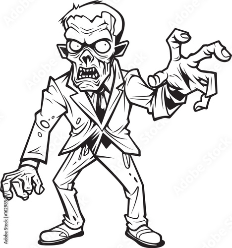Standing Zombie Reaching Out Vector Black Logo Icon Creepy Dead Figure Pointing with One Arm Black Vector Design