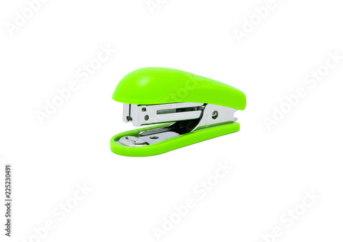 Stapler, office equipment green color isolated on a white background, with clipping path.