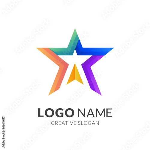 star and arrow logo template, modern 3d logo style in gradient vibrant colors