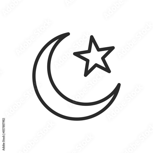 Star and Crescent, linear style icon. Islamic symbol of star and crescent. Editable stroke width.