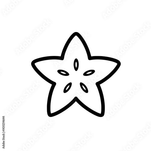 Star Fruit Delight: An artistic, high-contrast monochrome representation of a star fruit, showcasing its unique shape and internal structure, perfect for illustrating tropical flavors.