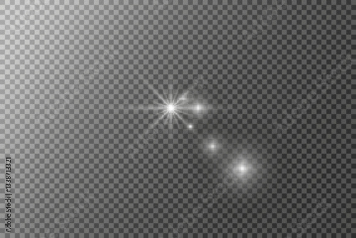 Star glow. Bright reflections, rays. Flash of light on a transparent background. Vector image.