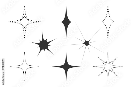 Star icons set. Creative dot fantasy for decorative works in black grey color. Isolated elements on white background