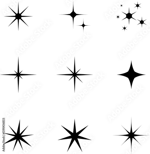 Star icons. Twinkling stars set. Sparkles, shining burst symbols isolated