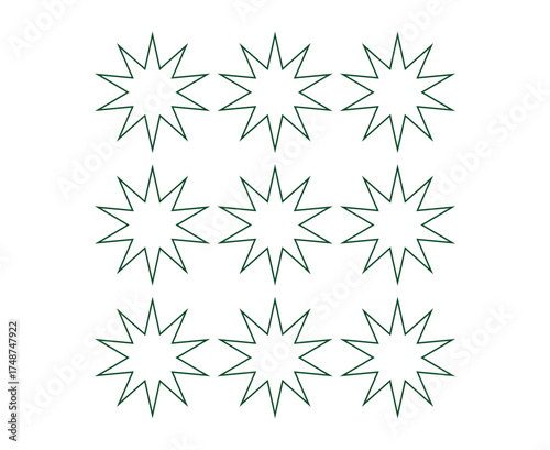 Star Shape Outline Collection Green Elements Creative Design Vector Illustration