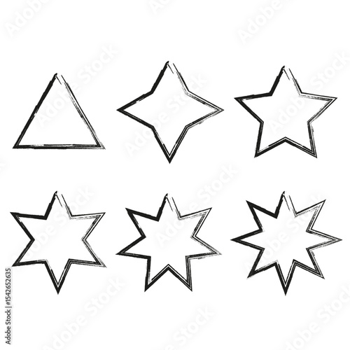 Star triangle icon. Outline shape figure. Vector graphic set. Black linear design.