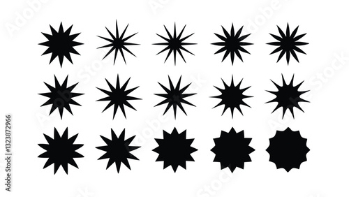 Starburst Shapes Graphic Design Elements, Black, White, Icons, Set, Variations
