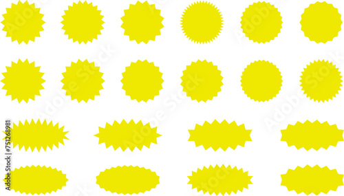 Starburst Yellow Sticker Set - collection of special offer sale oval and round shaped sunburst labels and badges. Promo stickers with star edges. Vector.
