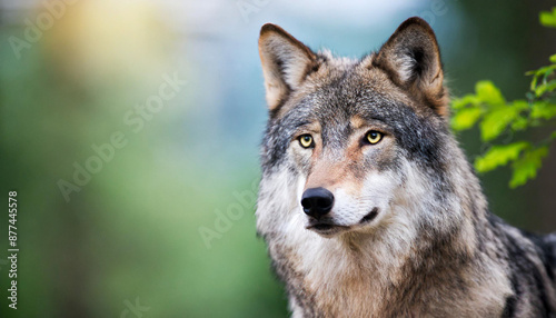Staring into the yellow ember eyes of a male wolf animal portrait and wild life conservatory