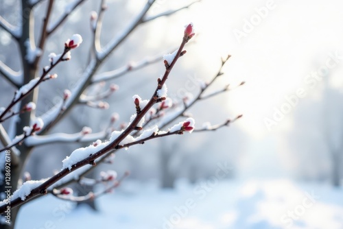 Stark, winter branches against a bright white backdrop , minimalist, winter, serenity