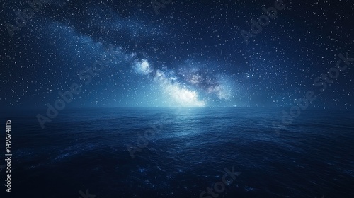 Starry night sky over rippled ocean