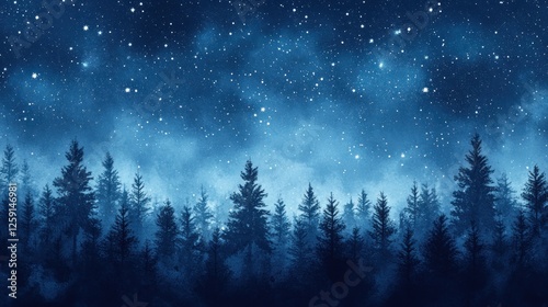 Starry Night Sky Over Silhouetted Pine Forest