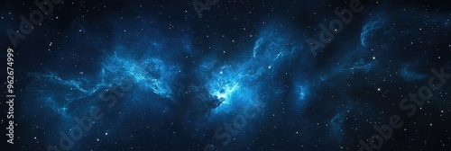 Starry Night Sky with Swirling Nebulae and Distant Galaxies, Dark Blue Cosmic Background