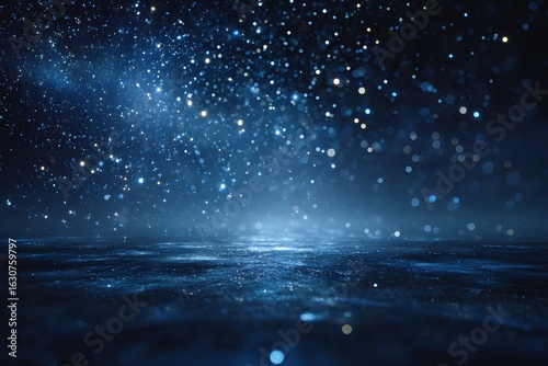 Starry sky background, blue night sky full of stars, glowing stars in the dark space, starry background, dark night, stars in the distance, starlight, dark background with a blue glow, night sky.