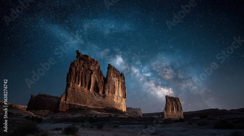 Starry Sky Over Desert Rock Formations With Milky Way View