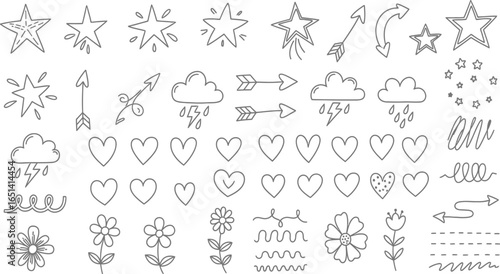 Stars, Hearts, Clouds, and Banners in Doodle Style