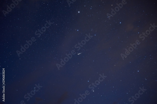 Stars in the night sky overhead. Night starry sky over the mountains. Stars and constellations in the sky.