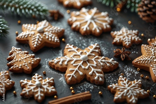 Star-Shaped Gingerbread Cookies Adorned with Festive Icing.