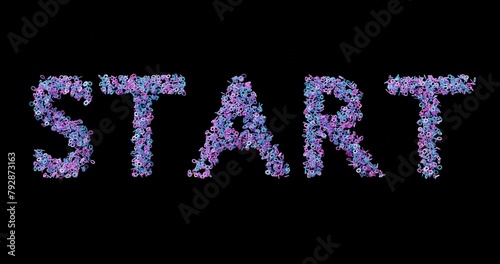 Start inscription with gears in pink and blue isolated on a black background, the concept of starting a business and life changes, 3d rendering