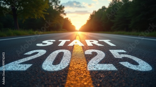 Start of 2025 on a road at sunrise