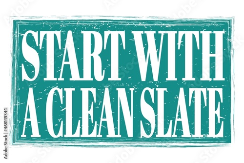 START WITH A CLEAN SLATE, words on blue grungy stamp sign