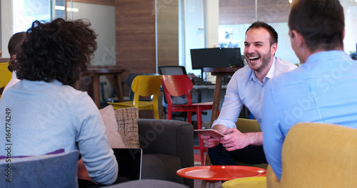 Startup Business Team At A Meeting at modern office building