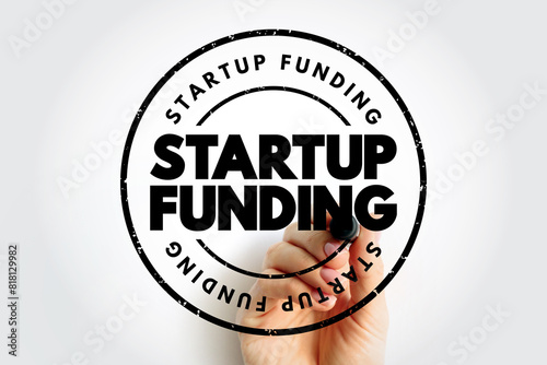 Startup Funding - act of raising capital to support a business venture, text concept stamp