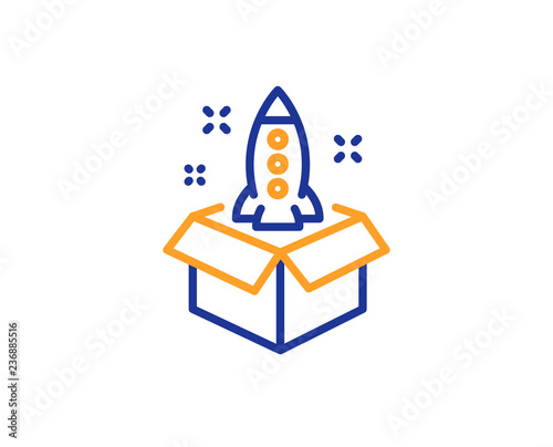 Startup line icon. Launch Project sign. Out of the box symbol. Colorful outline concept. Blue and orange thin line color icon. Startup Vector