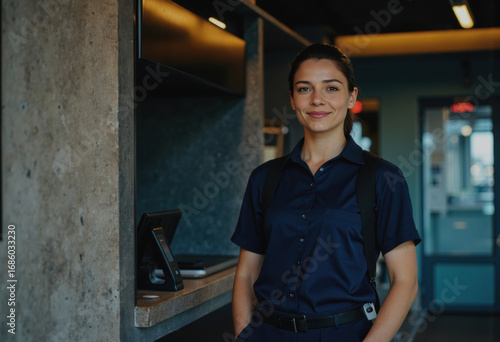 Station attendant smiling near the ticket booth area, ready to assist customers