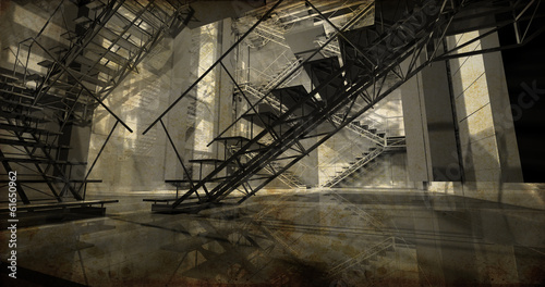 Station. Modern industrial interior, stairs, clean space in indu