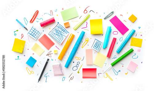 stationery in doodle 2D illustrator style, with cartoonish/symbolic elements and a white background.