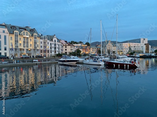 Stavanger Hafen / Torget in Norwegen mit Schiffe / Segelschiffe im Abendlicht