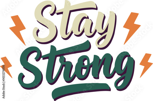 Stay Strong motivational lettering design with lightning bolts in green and orange colors vector